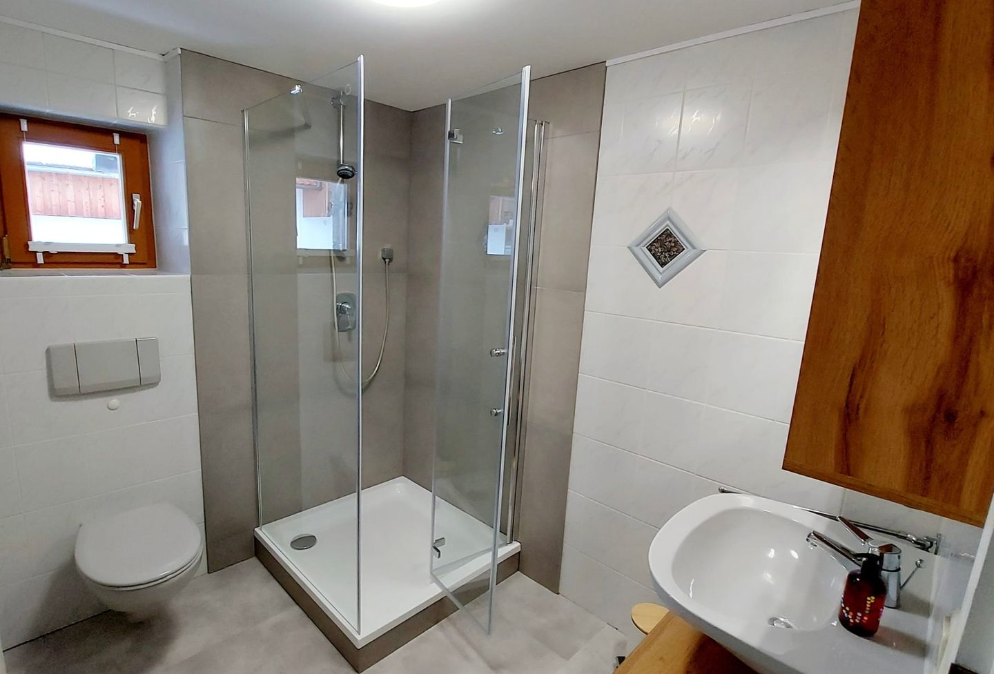 Das Badezimmer ist mit einer Dusche mit Wanne, WC, Waschbecken, Fenster, Spiegel, Kosmetikspiegel sowie einem Haartrockner und Warmwasser ausgestattet und bietet allen nötigen Komfort.